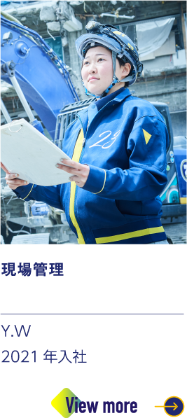 営業として、解体工事の見積もりから工事完了までを一貫して担当しています。現場ごとに条件が異なるため、工務や現場担当と相談しながら、工事方法や重機、工程、費用を組み立てていきます。同じ現場は一つもなく、経験を重ねるほど判断の精度が上がっていくのが、この仕事の一番の面白さです。自分の積算通りに工事が進み、無事に完了したときには大きな達成感があります。