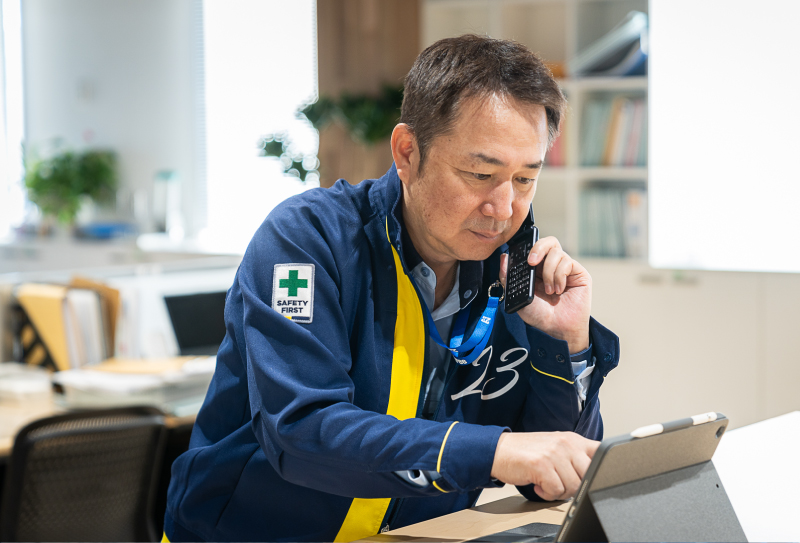 各現場を統括し、進捗や予算を管理しながら現場監督の配置や最終判断を担当。安全性と効率向上のため、新技術や重機導入の検討も行い現場全体を最適化しています。